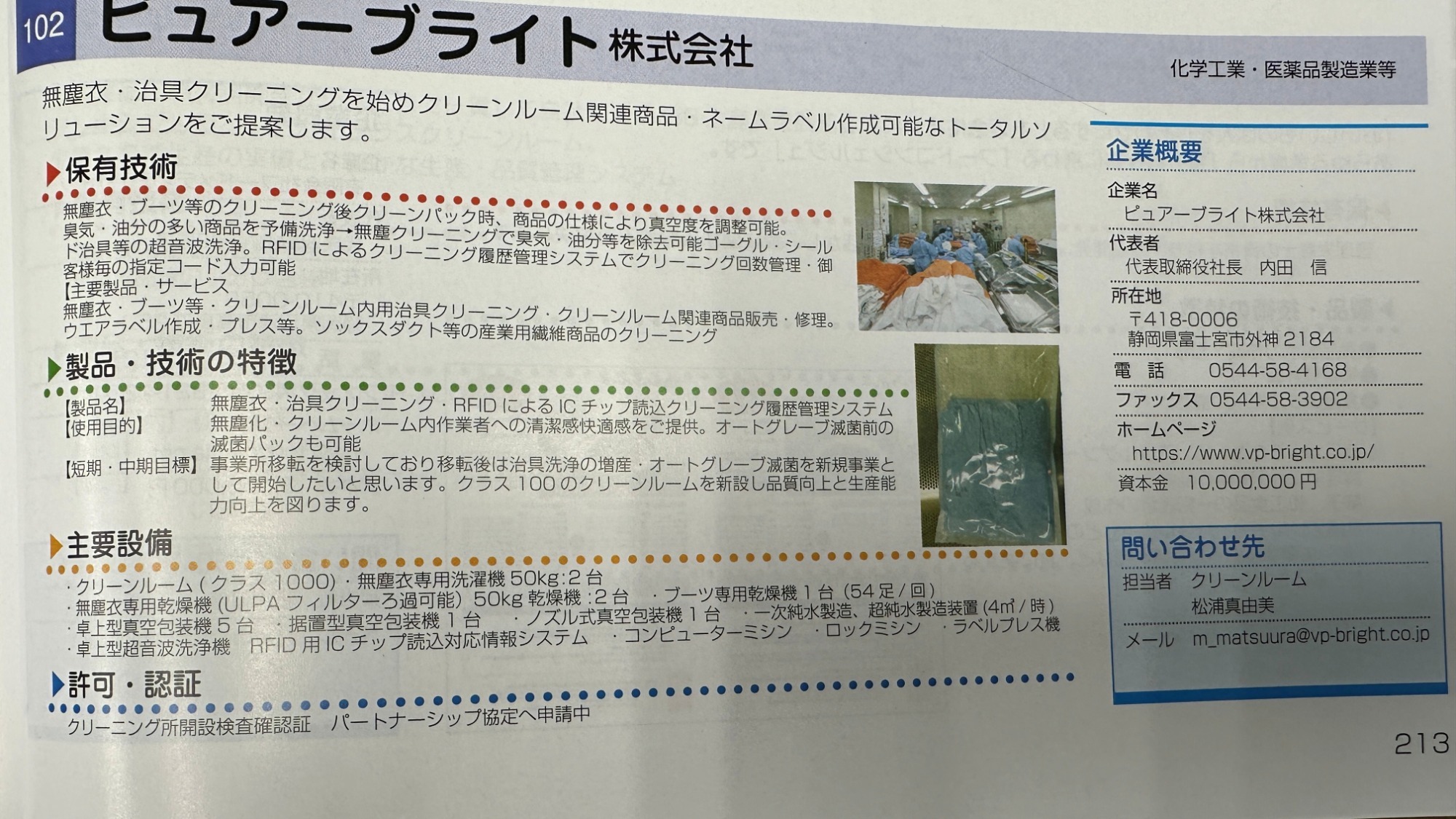 ファルマバレープロジェクトものづくり企業集「ふじのくにの宝物2026」の213頁に当社が初めて記載されました。是非、御一読下さい。